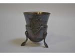 COQUETIER en argent uni reposant sur trois pieds, le corps à décor d'un cartouche feuillagé Poinçon Minerve H. : 5.5 cm, poids : 30 gr