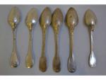 Six CUILLERES A CAFE en argent, modèle filets Poinçons Vieillard et Minerve Poids : 98 gr (chocs)