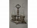 HUILIER VINAIGRIER en argent à décor rocaille, on y joint deux carafes et leurs bouchons en cristal Poinçon Minerve H. : 24.5 cm, poids net : 368 gr