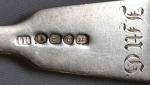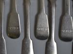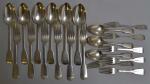 Partie de MENAGERE en argent, chiffrée, comprenant: - six fourchettes - six cuillères - six fourchettes à dessert - trois cuillères à dessert Poinçons anglais Poids: 1 kg 290