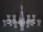 Service à liqueur en cristal à décor géométrique, comprenant une carafe et douze verres à base à pans coupés, époque Art Déco