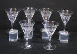 Suite de six verres à vin en cristal taillé d'une frise de losanges alternés. Haut : 13,5 cm