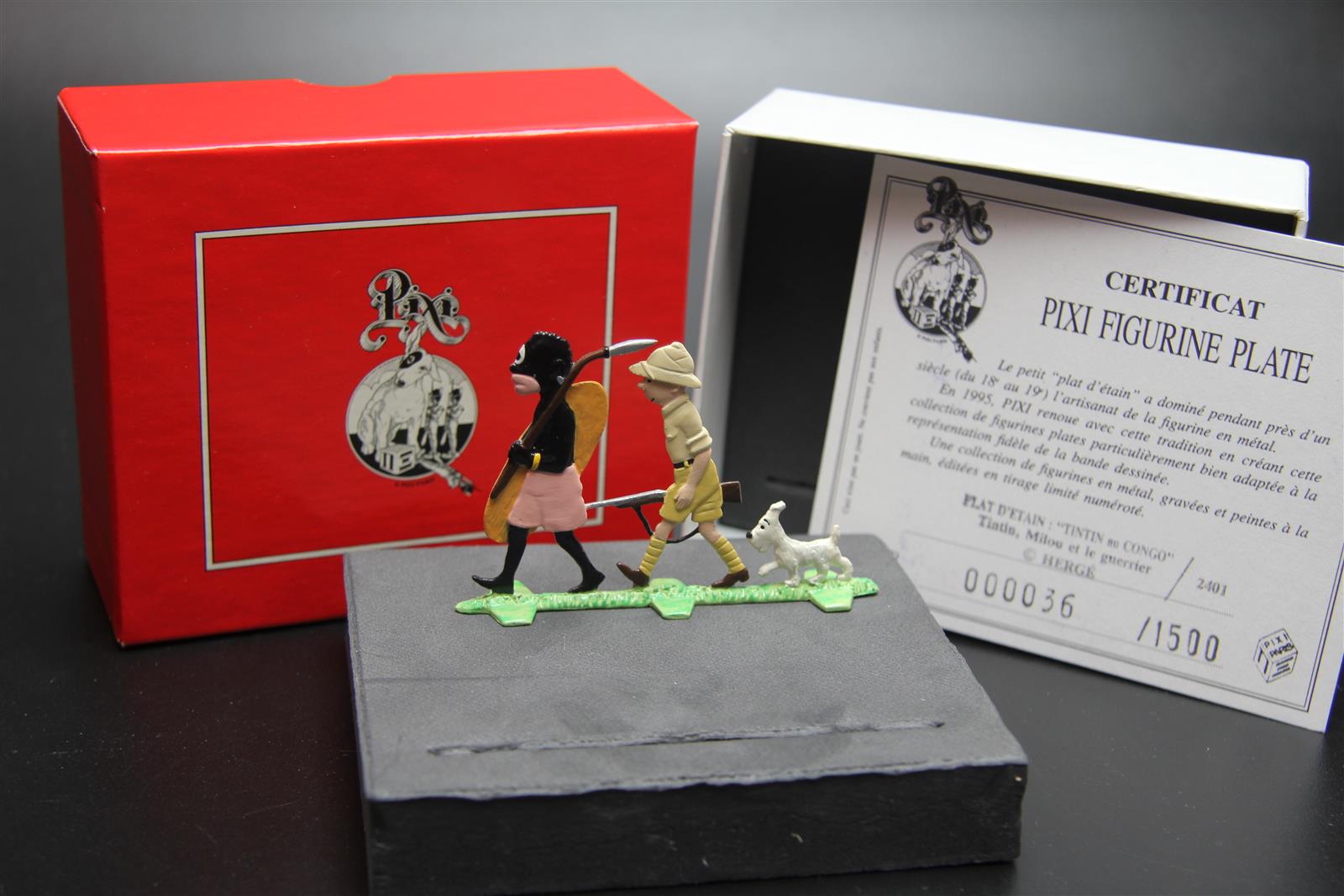 PIXI FIGURINE PLATE - TINTIN : 2401 "Tintin au Congo" (Tintin, Milou et le guerrier) N°36 /700 exp. réalisés sur 1500 (1995)