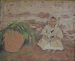 Paul NASSIVET (1904-1977) Paysage du Maghreb, la jeune fille aux fleurs Huile sur toile signée en haut à gauche 54 x 65 cm