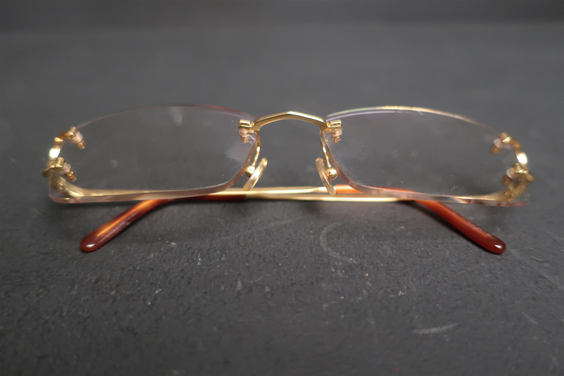 MUST de CARTIER - Lunettes de vue vintage, la monture en métal plaqué or et acier brossé. Signées et numérotées 044553. Dans leur boite / contreboite / étui / certificat d'authenticité. Valeur neuve 609