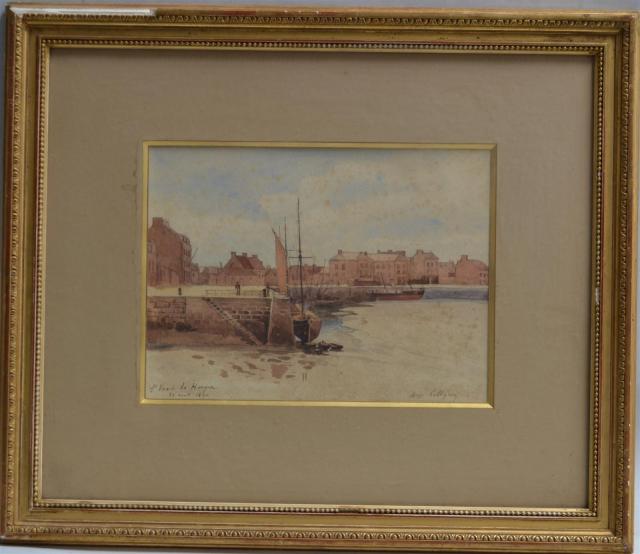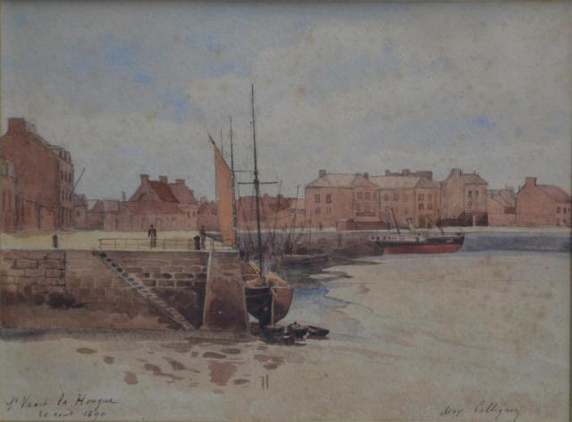 Max COLLIGNON (XIX-XXème) Saint Vaast La Hougue, 1890. Aquarelle signée en bas à droite, située et datée en bas à gauche 22 x 30 cm à vue (piqûres)
