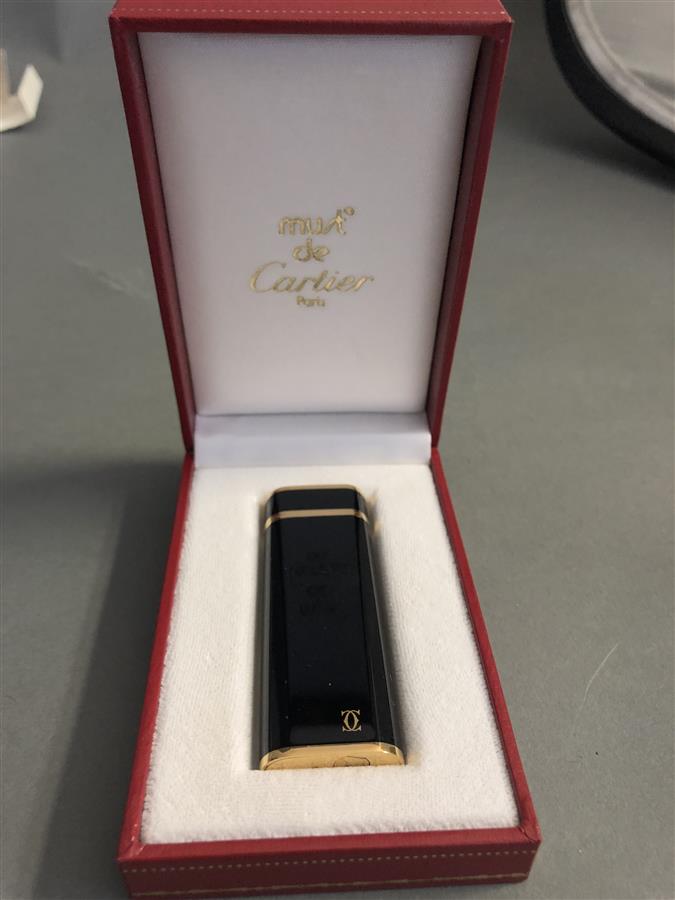 MUST DE CARTIER - BRIQUET en plaqué or laqué noir siglé, signé et numéroté. Dans son écrin, avec notice.