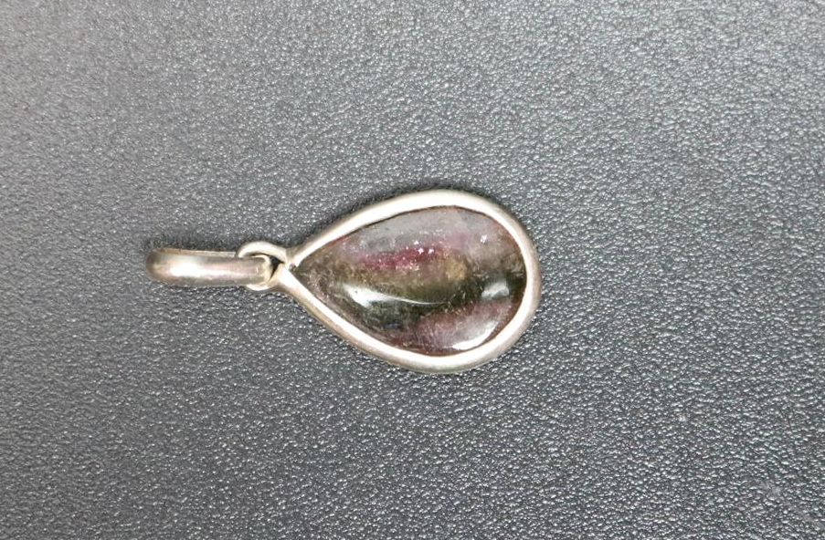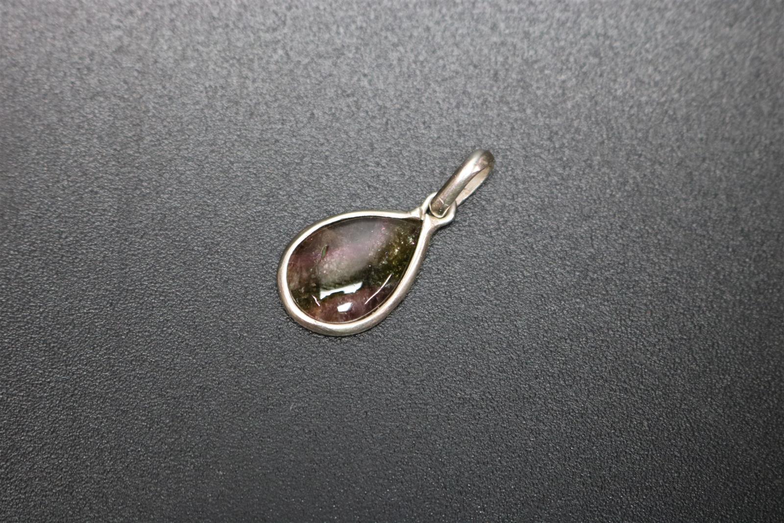 Pendentif en argent et tourmaline melon d'eau brute. Poids brut : 1,9 g