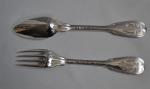 COUVERT en argent, modèle filets, gravé d'armoiries sous couronne de comte Bordeaux, 1784-1786 Maitre orfèvre: Jacques GEORGEON, reçu en 1779 Poids: 184 gr