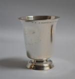 TIMBALE en argent uni, reposant sur un piédouche, le col gravé Tours, 1780 Maitre orfèvre: probablement Jacques Marin BROSSEAU H.: 10 cm Poids: 176 gr (modifications au piédouche)