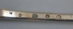 CUILLERE A RAGOUT en argent, modèle uniplat, la spatule gravée Vannes, XVIIIème Maitre orfèvre: Joseph Pierre Marie TIRET, reçu en 1765 L.: 33 cm Poids: 136 gr