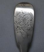 COUVERT en argent, modèle uniplat, chiffré Nantes, XVIIIème Maitre orfèvre: Marie Anne ASSELIN veuve François GUILLOU ou Jeanne THEBAUD veuve Etienne GODOFRE Poids: 160 gr