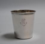 TIMBALE en argent, le col souligné de filets, chiffrée Paris, 1789 H.: 7.2 cm Poids: 70 gr (petite déchirure au buvant)