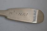 CUILLERE A RAGOUT en argent, modèle uniplat, la spatule gravée XVIIIème L.: 36 cm Poids: 190 gr