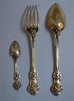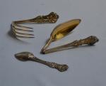 COUVERT DE VOYAGE pliant et une CUILLERE A THE en vermeil, richement décorés de coquilles, filets et motifs Paris, 1819-1838 L.: 23 cm (ouvert) et 12 cm (fermé) Poids: 232 gr