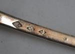 LOUCHE en argent, modèle uniplat, chiffrée Début XIXème L.: 38 cm Poids: 254 gr (petit choc au cuilleron)