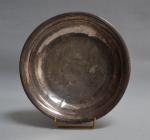 JATTE ronde en argent, la bordure moulurée de filets, chiffrée Paris, 1819-1838 D.: 27 cm Poids: 492 gr (nombreux chocs)