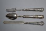 COUVERT et COUTEAU de baptême en argent, les manches en argent fourré, chiffré 1819-1838 L. max: 20 cm Poids brut: 118 gr
