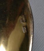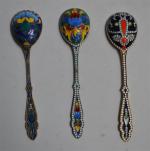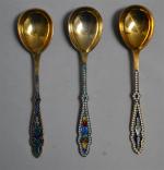 Trois CUILLERES en vermeil à bas titre et émaux polychromes Travail russe L.: 17.5 cm Poids brut: 162 gr