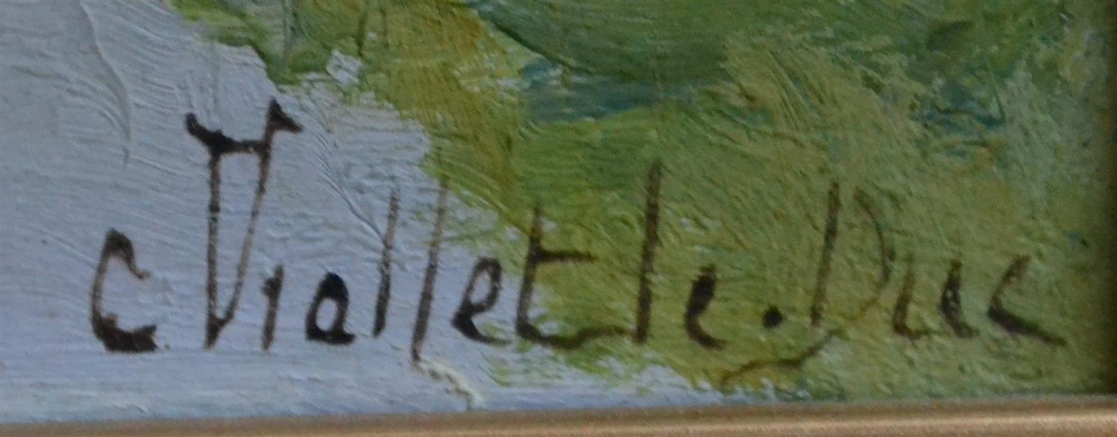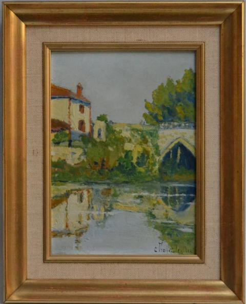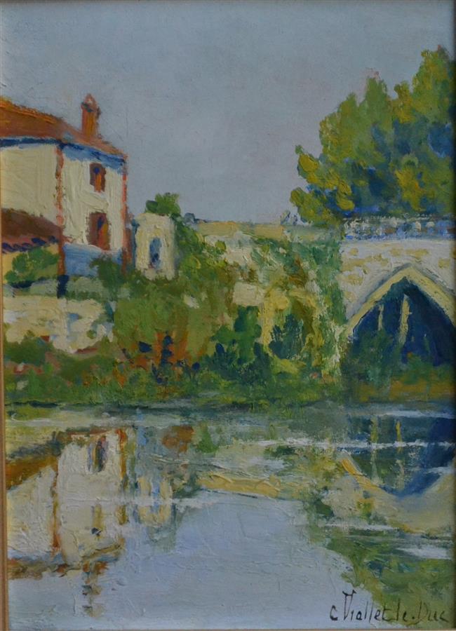 C. VIOLLET-LE-DUC (XIX-XXème) Montaigu, le pont Huile sur panneau signée en bas à droite, située au dos 22 x 16 cm