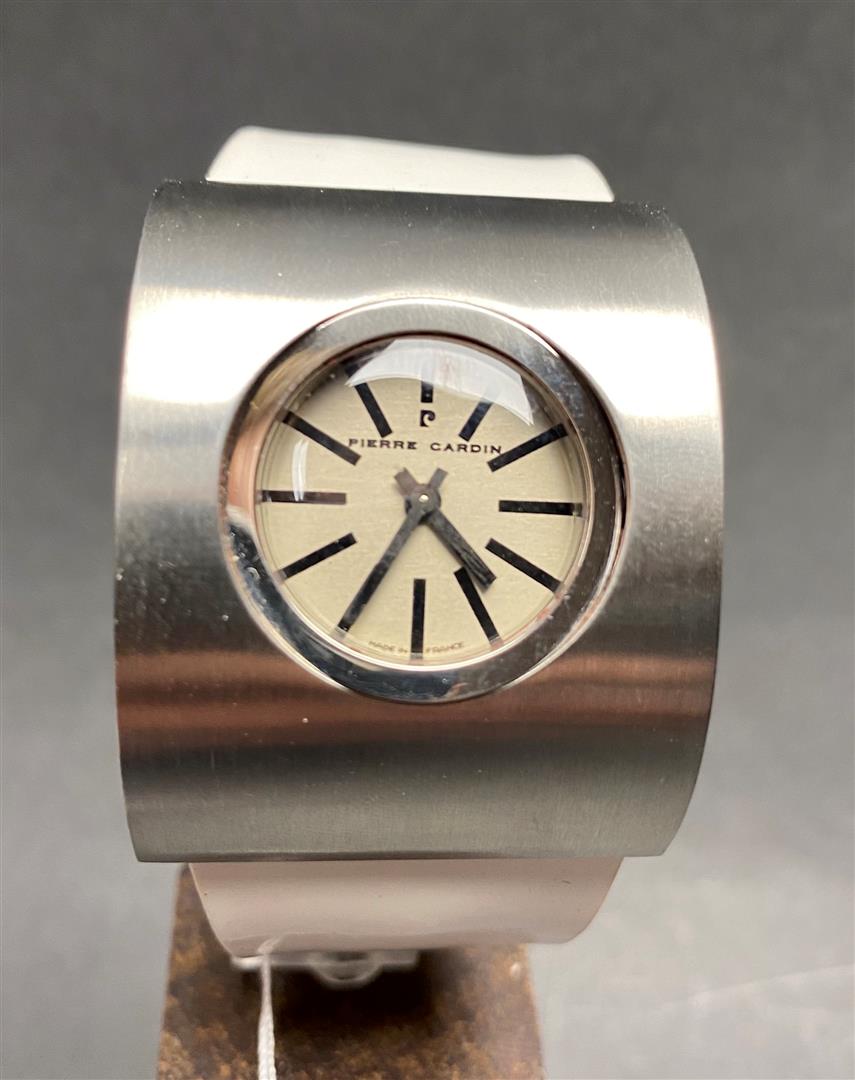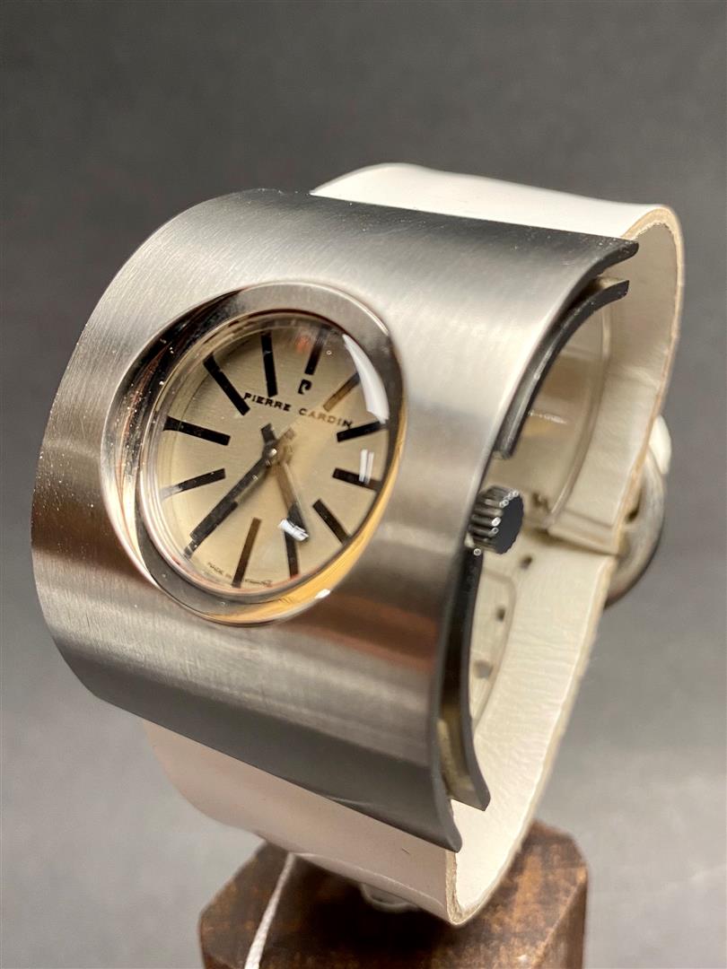 Pionnier de la haute couture, Pierre Cardin conçoit dans les années 1970 du mobilier futuriste mais aussi des montres extrêmement modernes. Tirées à peu d'exemplaires, ces montres sont commercialisées de 1971 à 1973 et vendues uniquement dans les ""Espaces"" Pierre Cardin."