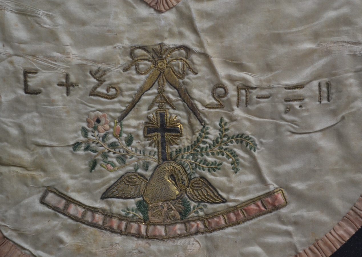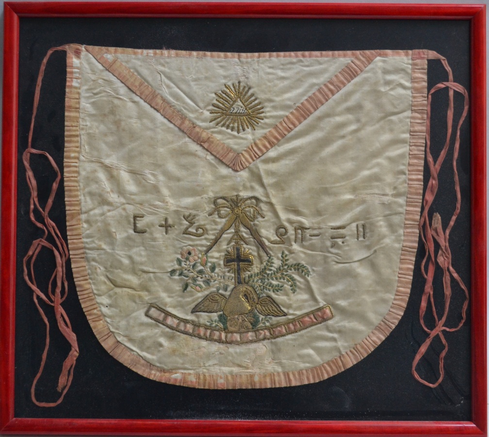 [franc-maçonnerie] TABLIER de Chevalier Rose-Croix XIXème 33.5 x 35.5 cm (usures)
