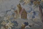 Atelier Robert FOUR : Tapisserie d'Aubusson en gros point d'après un carton du XVIII's : le Castel, tombée de métier "EAJ" n°2935, avec son bolduc, 108 x 165