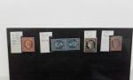 Lot de 7 plaquettes avec timbres classiques de France : des nuances, des oblitérations, quelques faux (dont faux n°6 et 18, fausse tête-bèche du n°22, fausse erreur de France n°55b), lot amusant