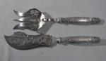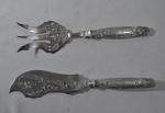 COUVERT DE SERVICE A POISSONS en argent fourré Minerve L.: 26 et 28.5 cm