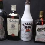 LIQUEURS & SPIRITUEUX - Lot de 9 Bouteilles comprenant : Kirsch, Verveine artisanale, Cognac Bisquit en boîte, Whisky Ballantines, Malibu, Cointreau, 2 Bouteilles Bodega.