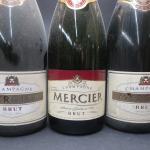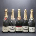 CHAMPAGNE - Lot de 5 bouteilles comprenant : 1 Bouteille Moët et Chandon Brut impérial, 3 Bouteilles Mercier Brut, 1 Bouteille Bellefon.