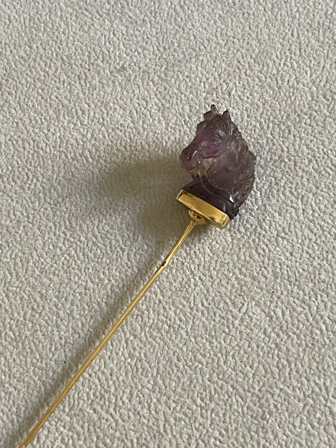 EPLINGE en or jaune avec tête de cheval en pierre violette sculptée poids 6.2 g