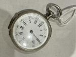 Petite MONTRE en argent, manque une aiguille, cadran émaillé blanc, fond gravé d'un cartouche