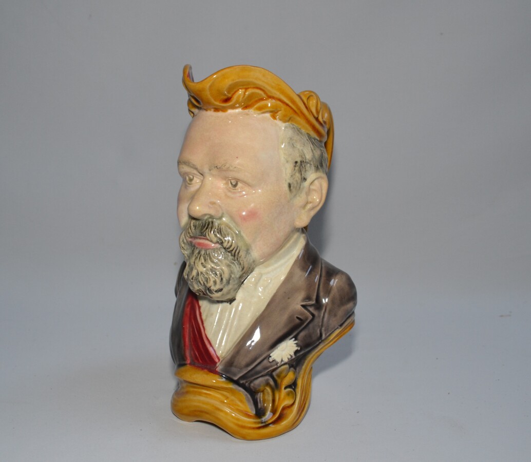 ONNAING Pichet en faïence représentant Raymond Poincaré, n°816 H.: 26.5 cm Bibliographie: - Maryse Bottero, Pichets en barbotine, modèle reproduit p. 78