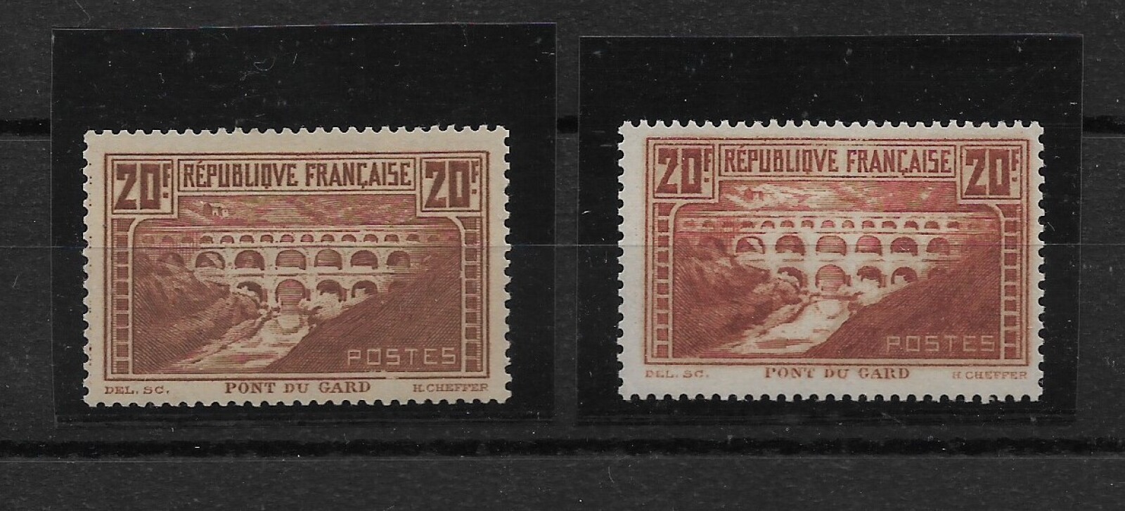 France n°262 + 262b, chaudron et chaudron clair, deux exemplaires neufs avec trace de charnière, TB, superbes nuances très différentes, cote 725