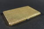 CARTIER Paris : Boîte à cigarettes en or 750 millièmes tressé, fermoir serti d'une ligne de saphirs calibrés, signée, numérotée 73077 et 017813. Poids : 228,60 g. Long.: 12 cm - Larg. : 8 cm - Haut. : 1 cm
