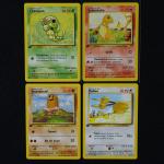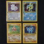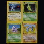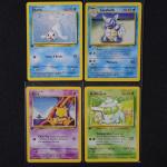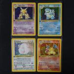 POKEMON. Collection complète des 102 cartes du Set de Base en 1ere Edition en Français, Fabriquées par Wizards en 1999. Etat : A+/A (correspondant à MINT/NEAR MINT) sauf Léviator, Nidoking et Melofée en Etat B+ (correspondant à EXCELLENT). NB: Etat des cartes visible sur les photos de détails, possibilité d'envoyer sur demande toutes les photos du lot Recto/Verso si besoin, nous recommandons de venir examiner le lot sur place lors de l'exposition.