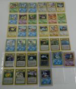 POKEMON - 34 cartes en Réédition UNLIMITED de l'Exntension NEO GENESIS Français (incomplet dont Steelix, Roigada, Azumarill, Hyporoi Holo Brillants Foil). Etat C+ : correspondant à LIGHT PLAYED. NB: Etat des cartes visible sur les photos de détails, possibilité d'envoyer sur demande d'autres photos si besoin, nous recommandons de venir examiner le lot sur place lors de l'exposition.