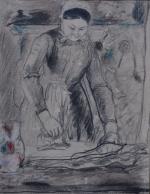 Charles MILCENDEAU (1872-1919) La repasseuse Dessin rehaussé signé en bas à gauche 15.7 x 12.3 cm à vue (frottements)
