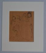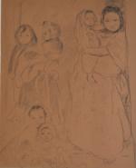 Jean LAUNOIS (1898-1942) Algérie, mères et enfants, 1921. Dessin signé en bas à droite 32 x 26 cm (frottements, insolé) Exposition: - Les Sables d'Olonne, Musée de l'Abbaye Sainte Croix, 2004. n°34