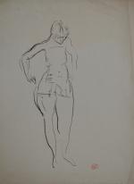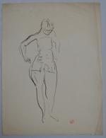 Jean LAUNOIS (1898-1942) Prostituée au corset Encre avec cachet d'atelier en bas à droite 40 x 30 cm (pliures)