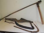 - Aiguille en bois pour ramasser les javels de grain et sape à manche bois, époque XIX-XXème. H. 46,5 cm. L. 56,5 cm. H. 48 cm. L. 59 cm.