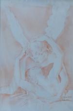 Marie Hélène LAMIOT d'après Canova Psyché ranimée par le baiser de l'Amour Sanguine signée et datée en bas à droite 29.5 x 21 cm