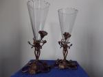 Paire de vases cornets en cristal, monture laiton. H.: 35cm