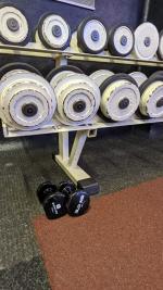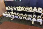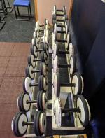 Plusieurs paires d'haltères PANATTA (6 kg, 8 kg, 10 kg, 12 kg, 14 kg, 16 kg, 18 kg, 20 kg, 22 kg, 24 kg) + 1 paire d'haltères 3 kg DOMYOS