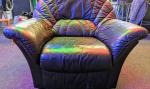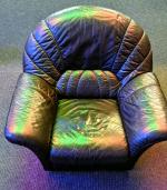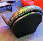 Couleur noire. Très confortable. Largeur 106cm, profondeur 93cm, hauteur 92cm