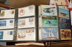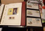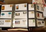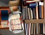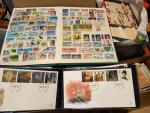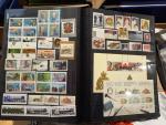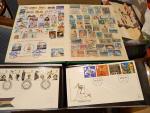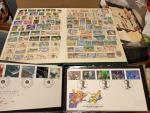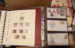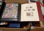 Dans 2 cartons et un sac, ensemble de classeurs et albums de timbres divers (Monde entier) plus enveloppes 1er Jour. A noter un album de timbres neufs modernes de Grande-Bretagne et Iles Anglo-Normandes, des enveloppes 1er Jour de Polynésie, Nouvelle-Calédonie, Wallis et Futuna, Saint-Pierre et Miquelon, ... A étudier
