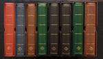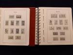 Matériel philatélique Leuchtturm d'occasion : albums préimprimés avec pochettes pour timbres de France, période 1980 à 2017, dans 8 reliures à anneaux avec boîtiers, valeur neuve du matériel supérieure à 1800 euros. Le revêtement des deux premières reliures est un peu frippé et un étui vert est abimé à l'intérieur, sinon l'ensemble est en très bon état.