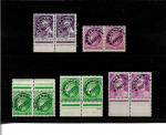 France, préoblitérés, lot de timbres avec variétés T surélevé et E avec crochet tenant à timbre normal : n°81b (T surélevé, cote 20), n°91Ab (T surélevé, cote 20), n°92a (E avec crochet, cote 20), n°92b (T surélevé, cote 20), n°102b (T surélevé, cote 20). Les 5 paires neuves sans charnière, TB, cote totale 100