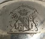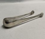 PINCE A SUCRE en argent, les prises en coquilles, gravée d'armoiries sous une couronne de marquis Minerve L.: 15.5 cm Poids: 54 gr